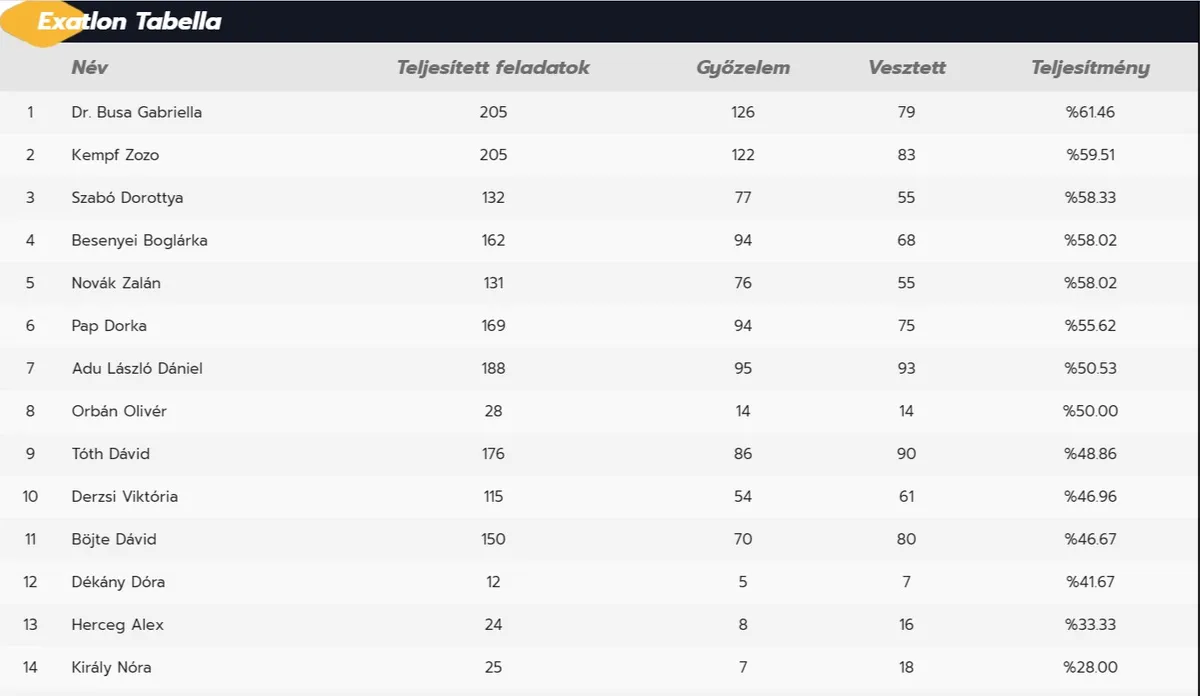 Kíváncsi vagy, hogy kik a dobogósok az Exatlon Hungary versenyében? Most megtudhatod! Mutatjuk a listát.