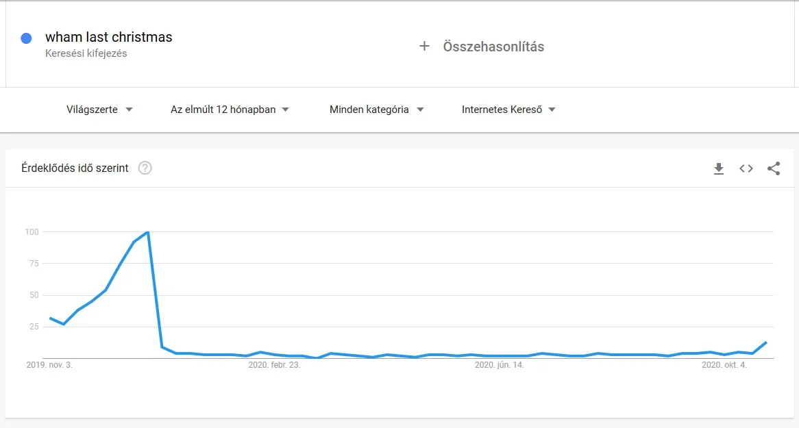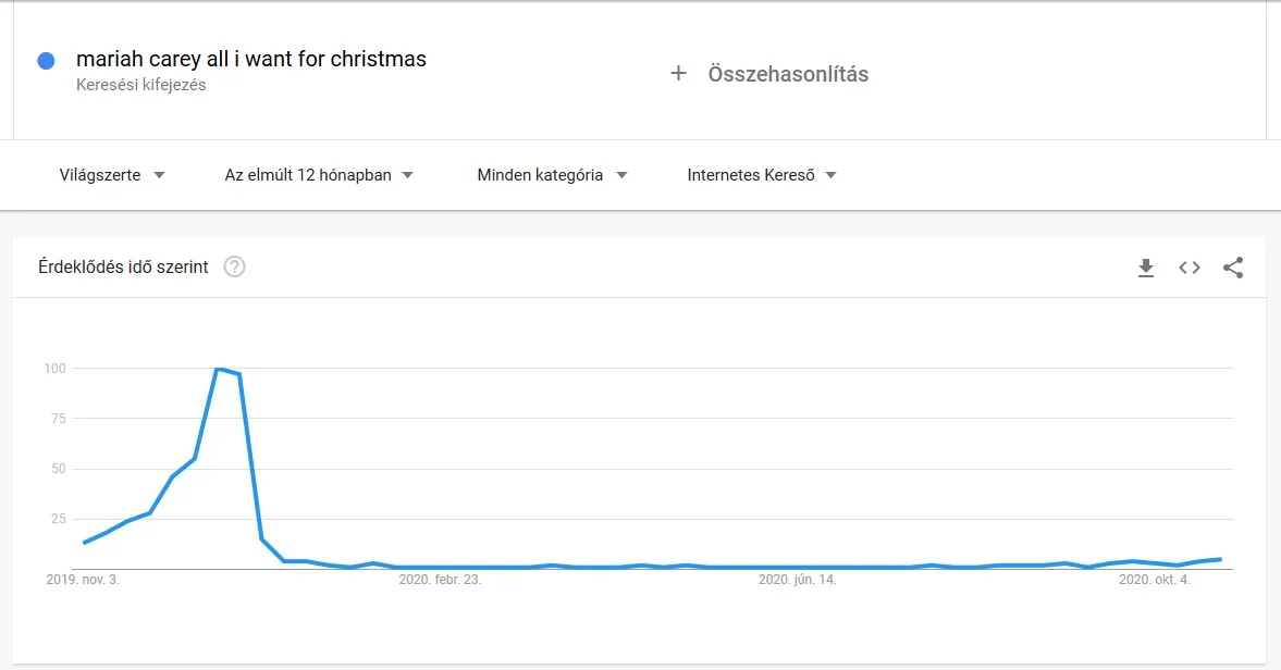 Sokan pedig ennek ellenére sem unják Mariah Carey All I Want for Christmas Is You című slágerét, illetve a Wham! Last Christmasét. Ugyanis a Google keresési szokásokat elemző oldalán mindkét popsláger emelkedésnek indult. Vagyis egyre többen keresnek rájuk az elmúlt napokban, hogy ezeket hallgassák.