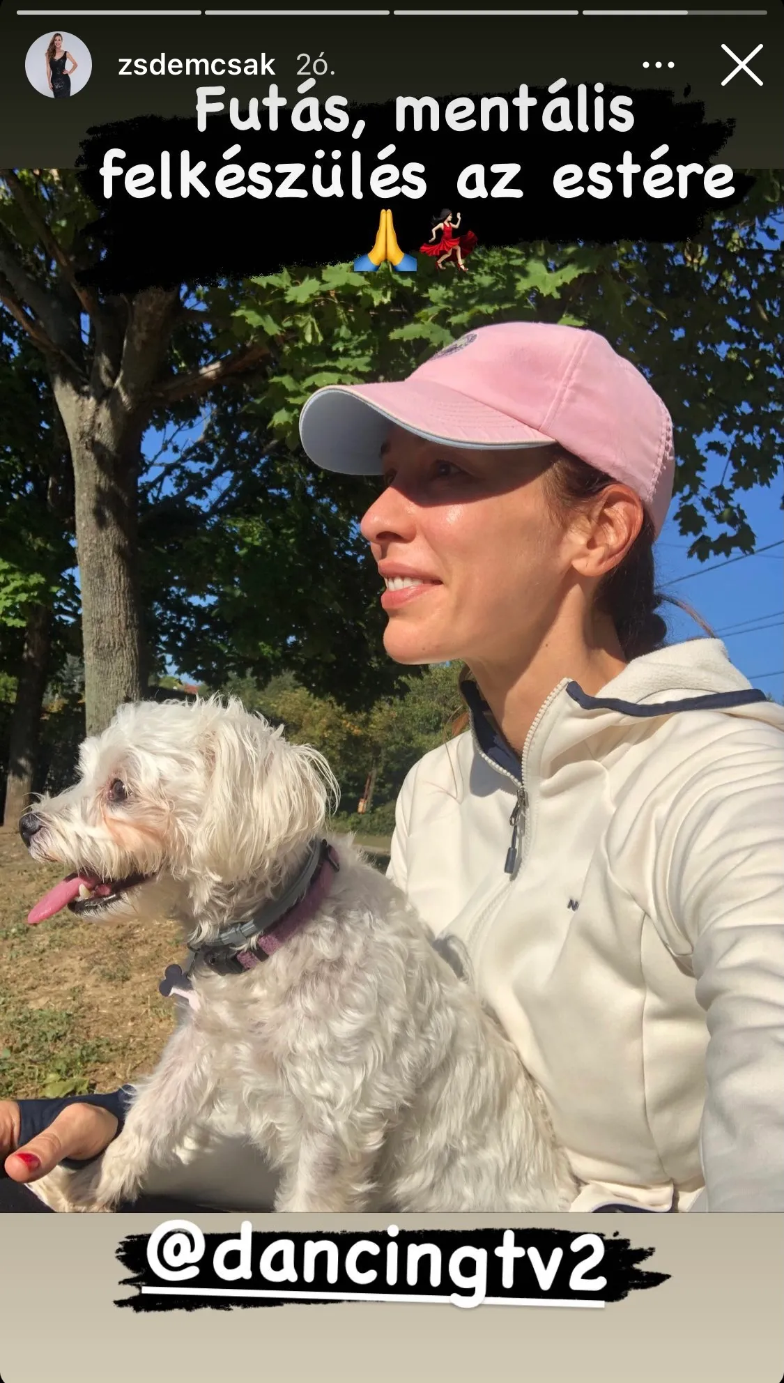 Zsuzsa az Instagram-oldalán írta meg, hogy nemcsak fizikálisan, hanem mentálisan is igyekszik felkészülni a különleges estére: ezért kutyájával együtt futással töltötte a szombat délelőttjét.