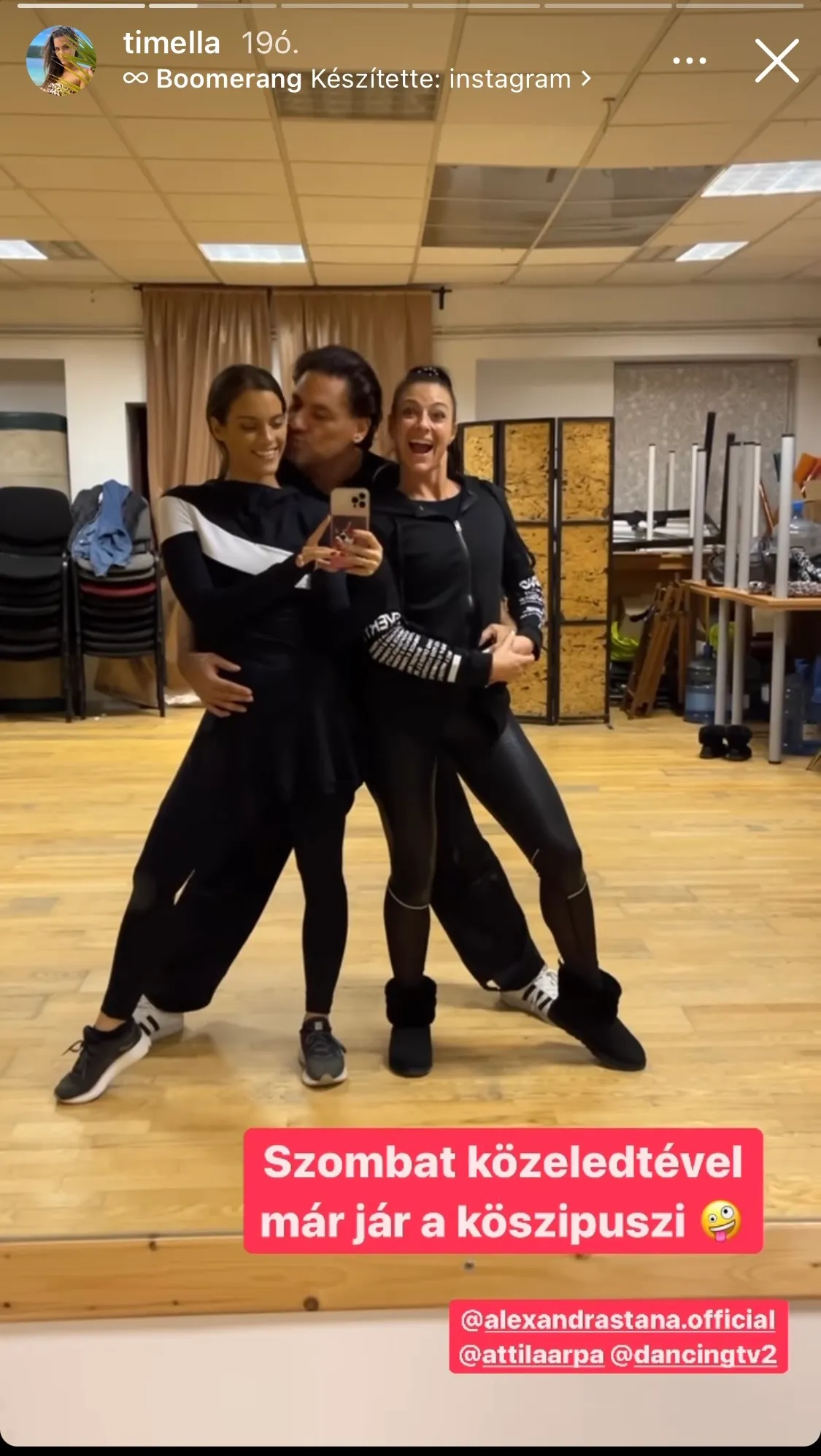 A Dancing with the Stars hetedik élő show-jában, szombaton a versenyben lévő párokkal lépnek fel az előző széria hírességei. Árpa Attila és Stana Alexandra a tavalyi évad nyertesét, Gelencsér Timit kapták, és vele együtt egy óriási segítséget is. Gőzerővel próbáltak a héten, hogy kiváló produkciót nyújtsanak majd a hétvégén a táncparketten. Úgy tűnik, igencsak jól haladtak a koreográfiával, ezt bizonyíthatja legalábbis az a mosolygós, puszilkodós fotó, amit Timi osztott meg a minap instagramos sztorijában.