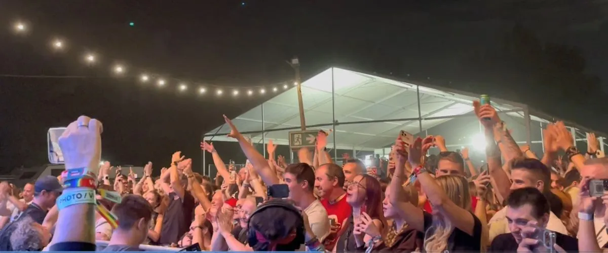 "Nagyon nagy szeretettel és tisztelettel köszöntjük kedves barátainkat!" – mondta vagy inkább kiabálta az énekes a mikrofonba, aki az őrjöngő tömeg hangjától alig hallotta magát. " Boldogok vagyunk, hogy itt énekelhetünk nektek" – folytatta.