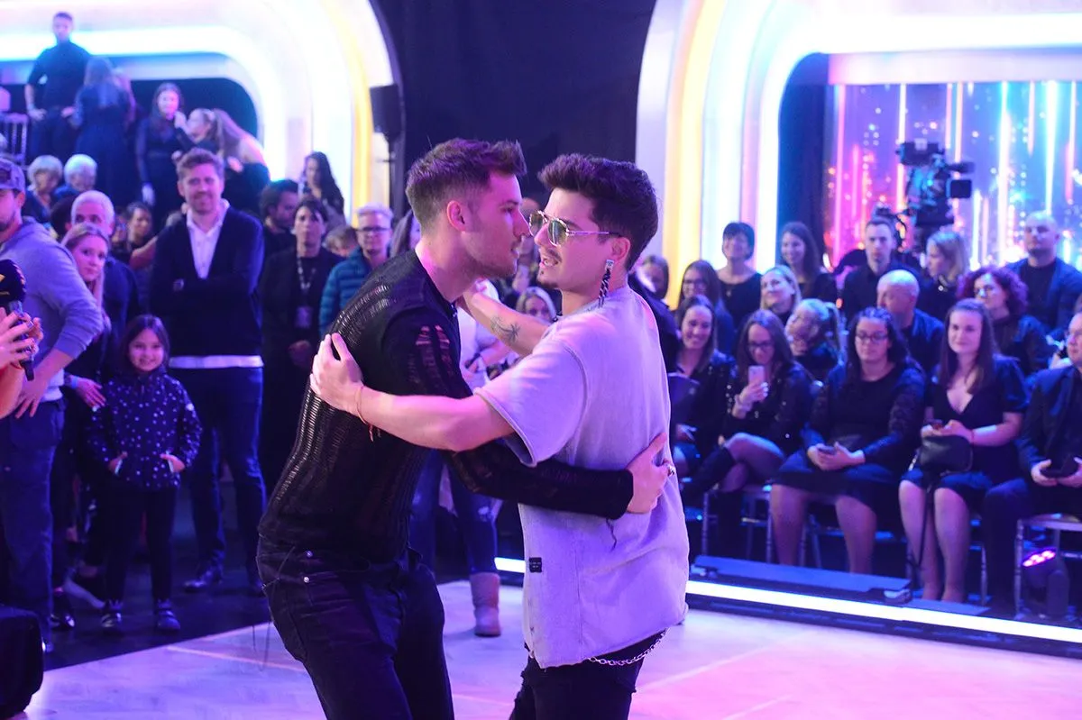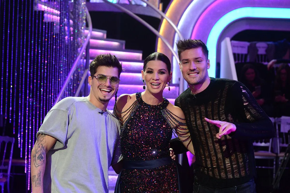 A műsor ideje alatt a srácok Metzker Vikivel és Halastyák Fannival együtt beszélgetnek a DWTS online műsorvezetőjével, Gelencsér Timivel, a szünetben pedig színpadra is léptek, és megvillogtatták tánctudásukat. A srácok Ördög Nóra élőzésében is szerepet kaptak, és régi ismerősként köszöntötték a gyönyörű zsűritagot - szúrta ki a Life.