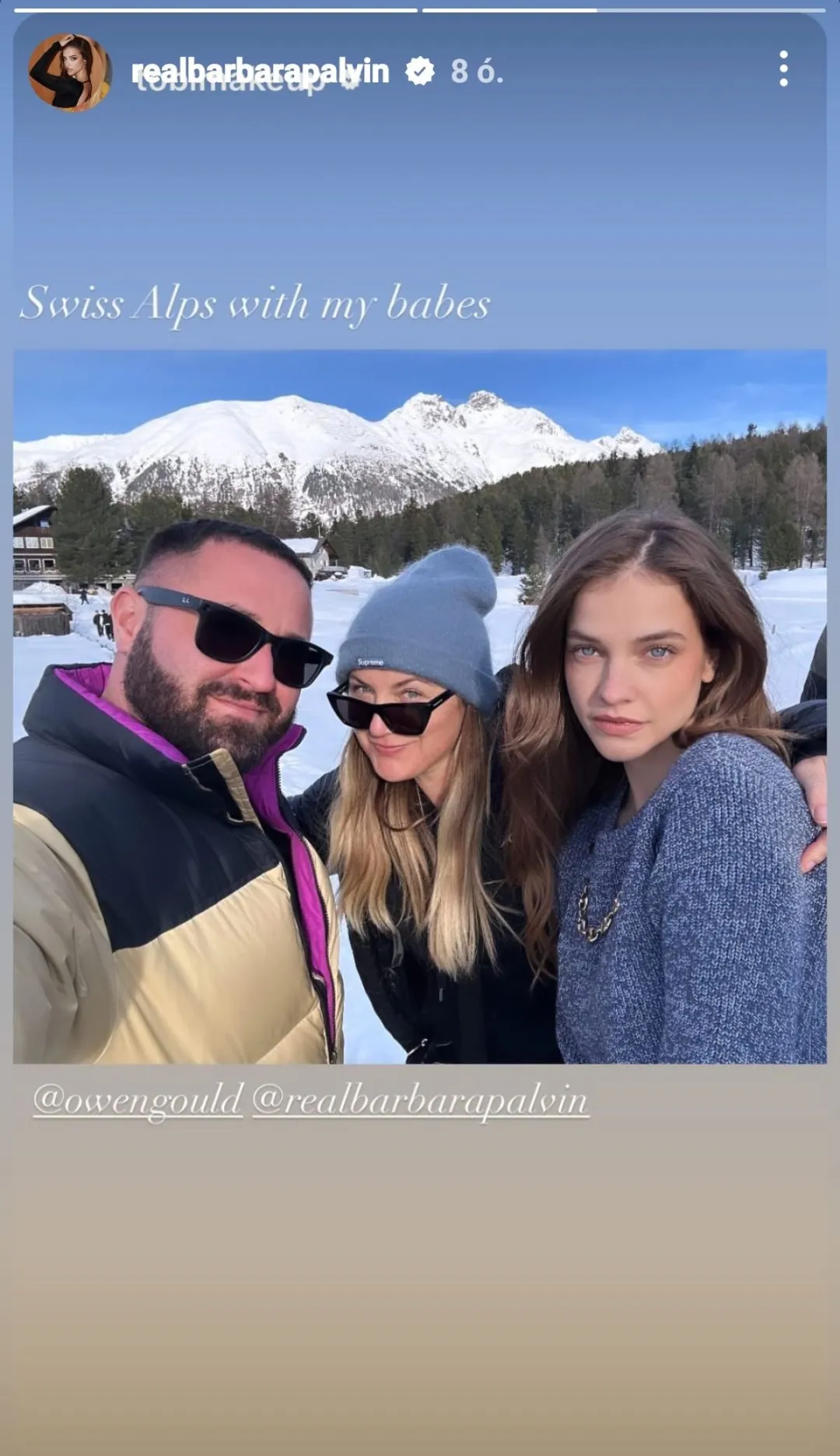 Mostani, 24 óráig elérhető Instagram sztorijába egy smink nélküli, pulóverben készült kép került ki róla és feltehetően két barátjáról, amelyen az Alpokban láthatók. Barbi kék szeme a havas háttérrel gyönyörű harmóniát alkot.