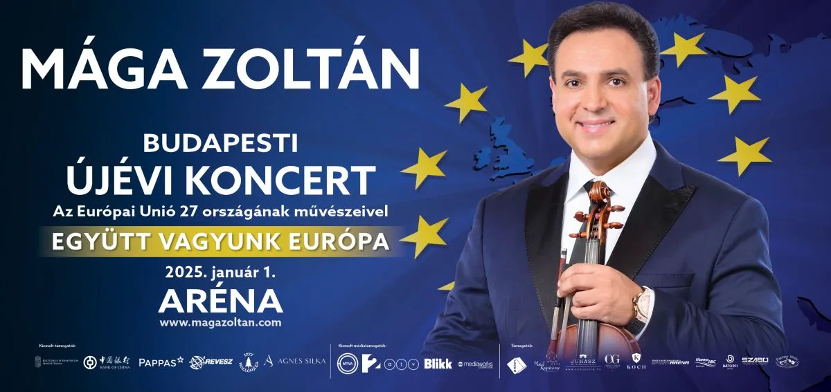 Az Európai Unió 27 tagállamának meghívott művészeivel és a legrangosabb magyar előadókkal rendezi meg XVII. Budapesti Újévi Koncertjét Mága Zoltán Prima Primissima-díjas hegedűművész 2025. január elsején a Papp László Budapest Sportarénában. Az egyedi, különleges díszlet és látványvilág között megvalósuló koncert a kulturális sokszínűségünk mellett az egységes Európát szimbolizálja, utalva a XVII. alkalommal megrendezésre kerülő gálakoncert jelmondatára: „Együtt vagyunk Európa”.