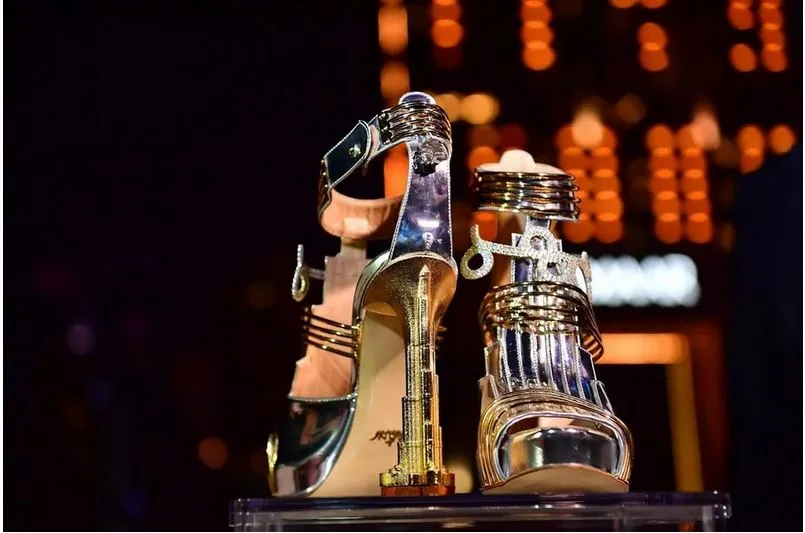 A cipellőbe ugyanis belekerült egy darab a Campo del Cielo meteoritból, amit 1576-ban fedeztek fel Argentínában. Ja és a tervező arra is ügyelt, hogy egy kis Dubajt is belecsempésszen az egyébként a Guinness Rekordok könyvébe is bekerült kreációjába. A sarok ugyanis a Burj Khalifa mintájára készült.