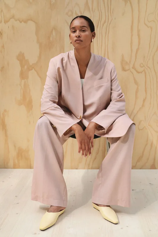 Az AERON alapító tervezője, Áron Eszter így mesélt a koppenhágai divathét előkészületeiről. „Amikor elkezdtünk dolgozni a 2023-as tavasz-nyári kollekciónkon, egyszerre éreztük azt a csapatomban, hogy egy kis könnyedségre, lazaságra, derűre vágyunk. A kollekció kosztümjei leheletvékony gyapjúból készültek, bővebbek és még letisztultabbá váltak, mint korábban, valamint egy derűt árasztó színben, a rózsaszín egy nagyon kifinomult árnyalatában készültek: így alkotva tökéletes egyensúlyt a maszkulin szabás és a nőies árnyalat között.”