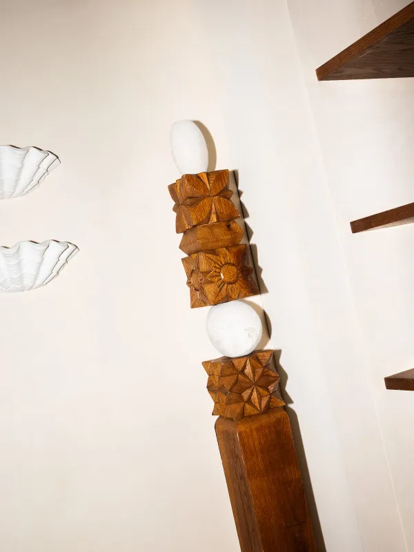 A pop-up tér nem csupán vásárlásra csábít, hanem egyedi élményt is kínál. A központban egy kézzel faragott fa totemoszlop áll, amely a Nanushka kopjafa-szimbólumait hordozza, tisztelegve a magyar örökség és a kézműves tudás előtt. A bolt enteriőrjét olyan aprólékos részletek gazdagítják, mint a budapesti műhelyben készített kagyló alakú lámpák, a kézzel varrt ülőpárnák, amelyeket a márka megmaradt anyagaiból alkottak, és az Okobor™ vegán bőrrel szegélyeztek.
