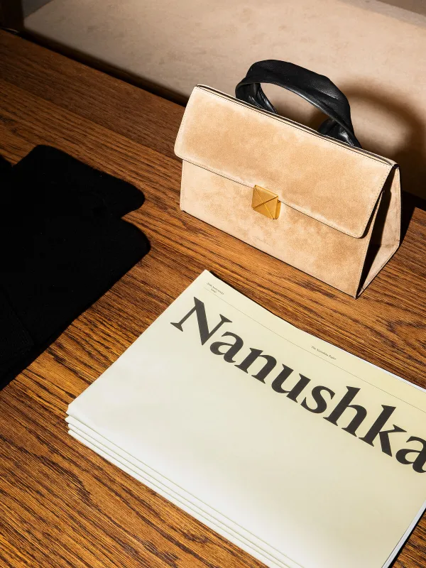 A bolt a márka legújabb, “Stop to Smell the Roses” Pre-Fall 2025-ös kollekciójával nyitott, amelyben helyet kaptak a Nanushka ikonikus kiegészítői, köztük a méltán híres Sandi táska. De az igazi szenzáció csak ősszel érkezik: itt debütál a vadonatúj Harmonicka táska, amelyet a magyar népi hangszerek inspiráltak.