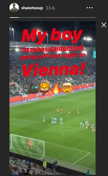 Shane Tusup Szoboszlai Dominik szerdai, Rapid Wien ellen szerzett gólját osztotta meg közösségi oldalán. Az amerikai úgy látszik nagy rajongója a 18 éves magyar sztárnak, hiszen követi őt az Instagramon is.