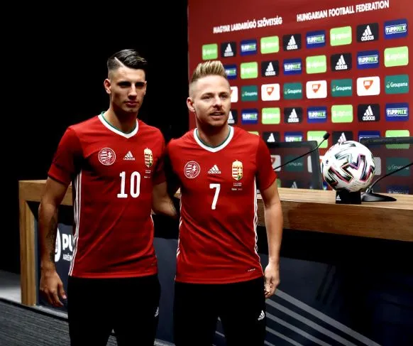 A dresszt Szoboszlai Dominik és Dzsudzsák Balázs prezentálta. A Puskás Aréna pénteki, Uruguay elleni nyitómeccsén már ebben játszik a válogatott.