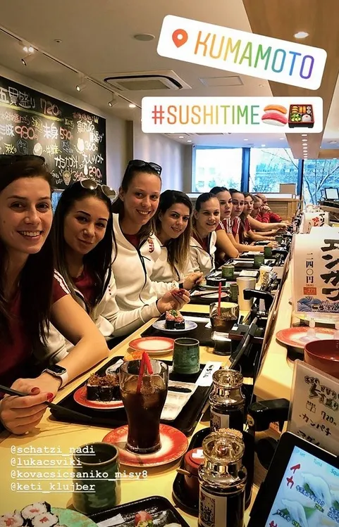 A magyar lányoknak hétfőn pihenőnapjuk van, miután szombaton a kazahok, vasárnap a spanyolok ellen játszottak. A kézilabdázók ezt ki is használták, egy szusibárban kóstolták meg a helyi specialitásokat.