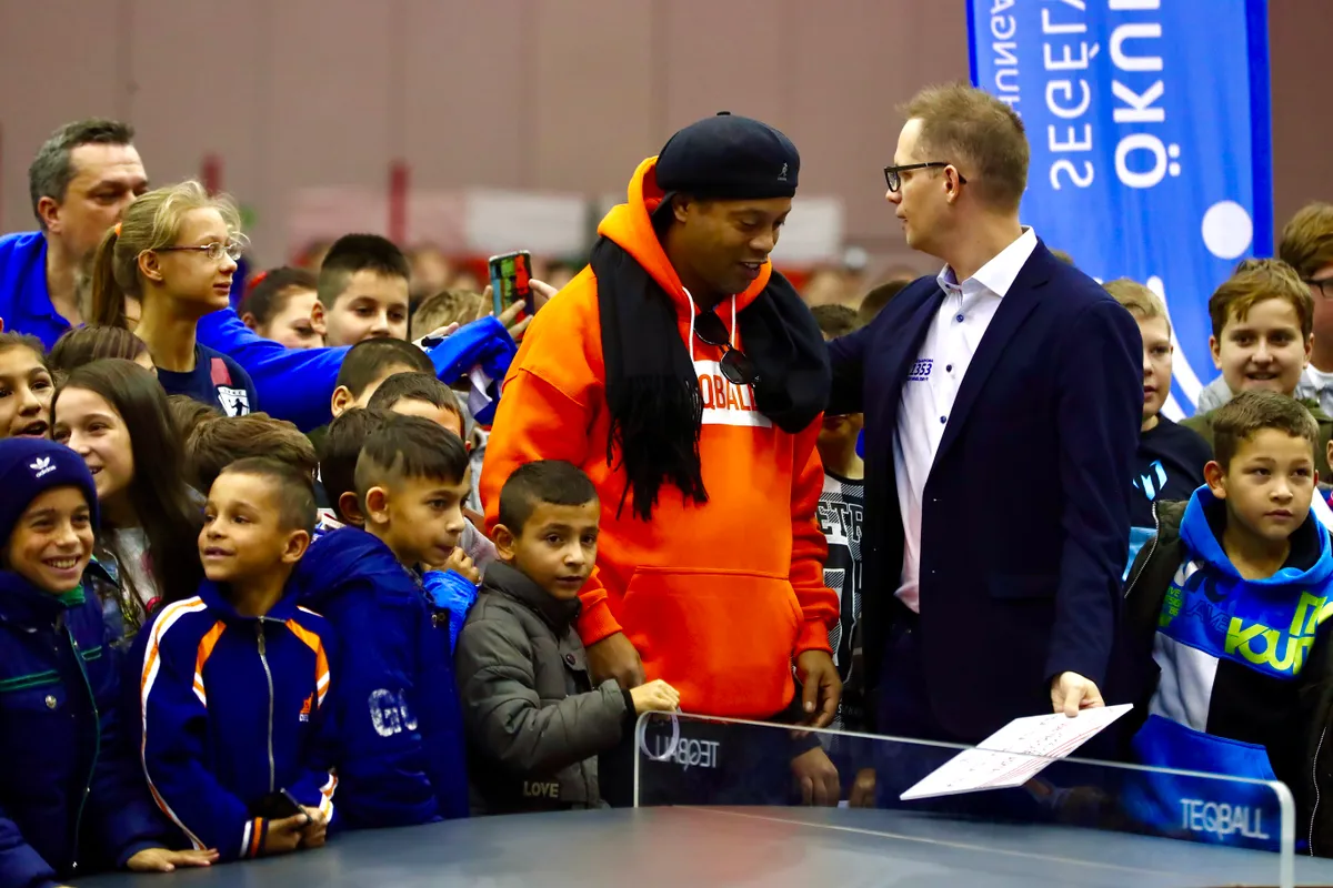 Az egykori legendás brazil futballista, Ronaldinho Gaúcho a teqball-világbajnokság miatt érkezett Budapestre.