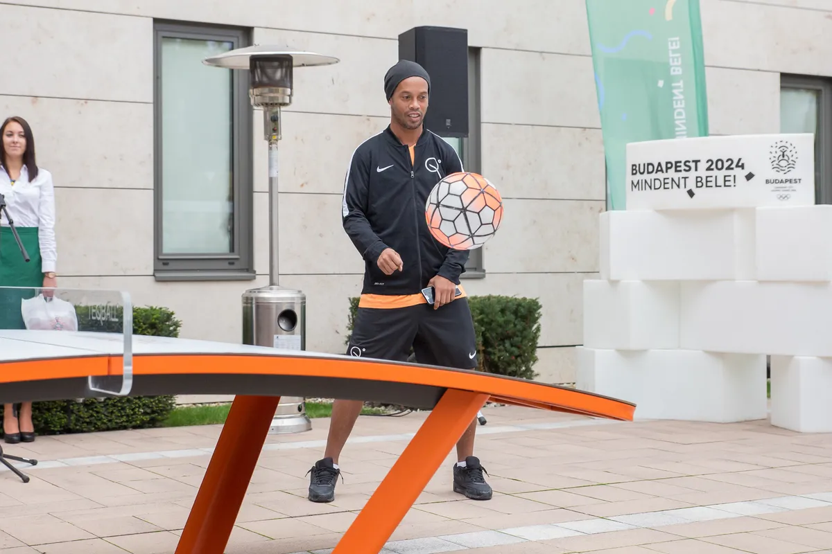 Másodszor érkezett Budapestre a Teqball miatt Ronaldinho. Az egykori aranylabdás brazil futballista először 2016-ban járt nálunk, azóta népszerűsíti a magyar találmányt.