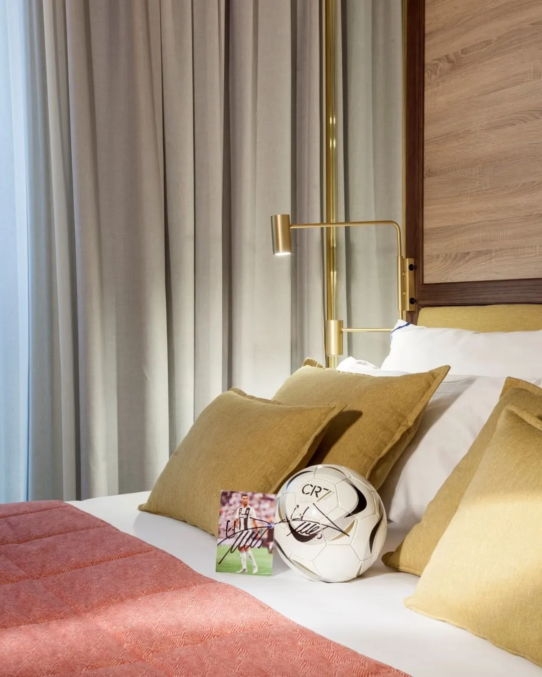 A Juventus ötszörös aranylabdás labdarúgója két képet osztott meg a spanyol fővárosban található helyről. A legfrissebb fotók szerint a szobákban egy dedikált Ronaldo-fotó és egy CR7 labda várja majd a vendégeket, míg a recepciót korábbi világbajnokságok fotói díszítik.