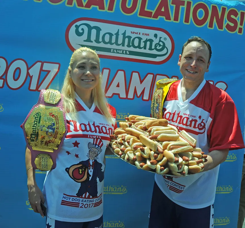 A legnagyobb favorit Joey Chestnut, aki számos csúcsot tart az Egyesült Államokban. 2018-ban például tíz perc alatt 74 hotdogot evett meg, idén pedig a Big Mac-versenyben nyomta le a riválisokat: 32 adagot gyűrt le 38 perc alatt. Mellette csupa nagy név, profi versenyevők indulnak a pénteken kezdődő viadalon, ahol ezúttal bolognait, apró süteményeket, babot és tésztát kell enniük időre. A hölgyek közül is a legjobbak vesznek részt, köztük van a hatszoros hotdogevő-győztes, Miki Sudo.