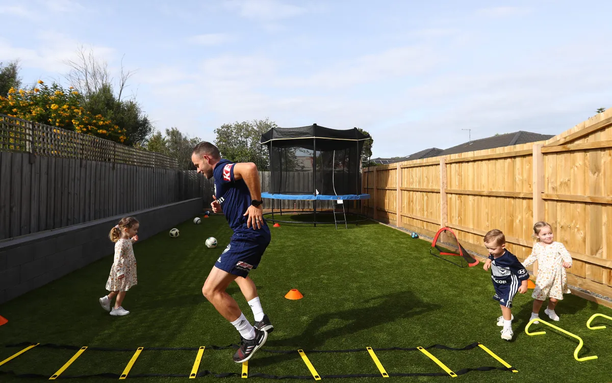 Leigh Broxham ausztrál labdarúgó a gyerekeit is bevonta a közös edzésbe. Utána pedig jöhetett a jól megérdemelt játék a trambulinon.