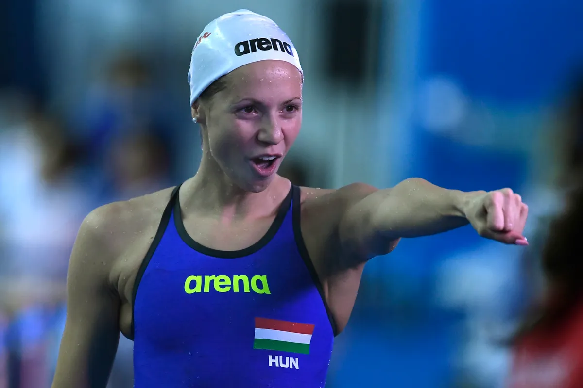 A világbajnok úszónő párjával, Telegdy Ádámmal élvezi a hűsítő zuhanyt.