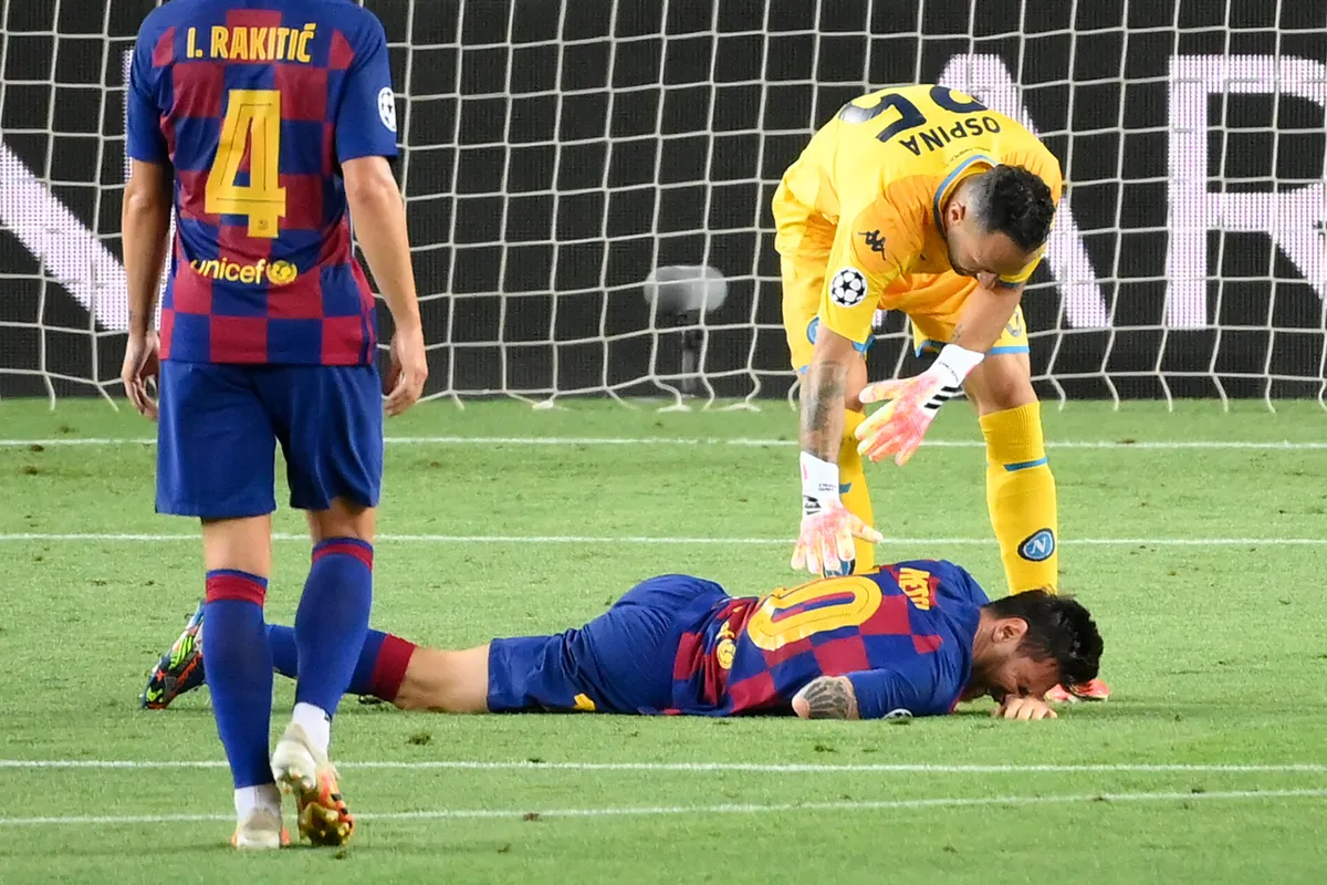 Megsérült a Barcelona hatszoros aranylabdás labdarúgója a Napoli elleni meccsen.