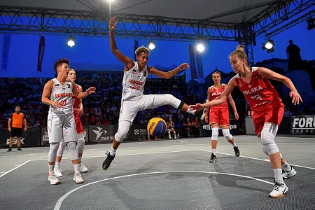 A szabályok A 3x3-as kosárlabdában tíz percig vagy 21 pontig tart a mérkőzés, amelyet egy palánkra vívnak a háromfős (egy cserelehetőséggel rendelkező) csapatok. Minden dobás egy pontot ér, kivéve a körgyűrűn kívüliek, amelyekért két pont jár. A hosszabbítást – rendes játékidős döntetlen esetén – két dobott pontig játsszák. A meccsenkénti egy időkérésnél csak a játékosok lehetnek jelen, a szövetségi kapitány nem.