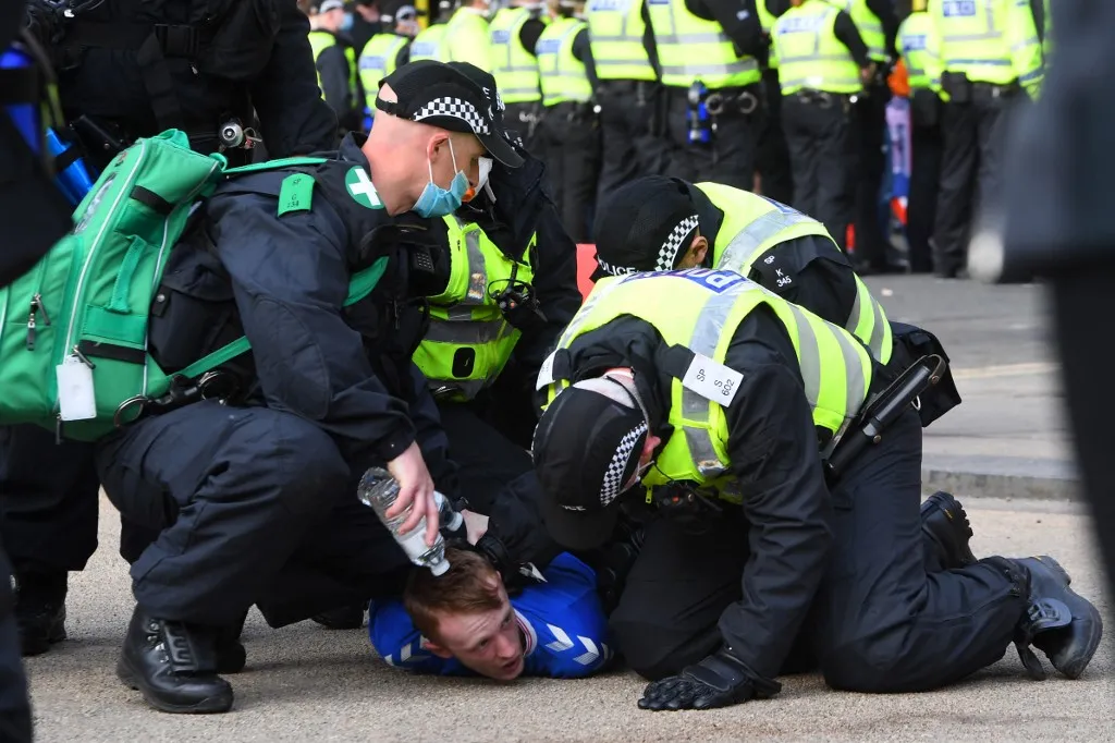 Üvegekkel püfölték egymást a skót Glasgow Rangers szurkolói, miután a csapat megnyerte a skót labdarúgó bajnoki címet. A megvadult drukkerek görögtüzeket gyújtottak, rongáltak, majd összecsaptak a rohamrendőrökkel – írja a The Sun. Számos szurkoló megsérült.