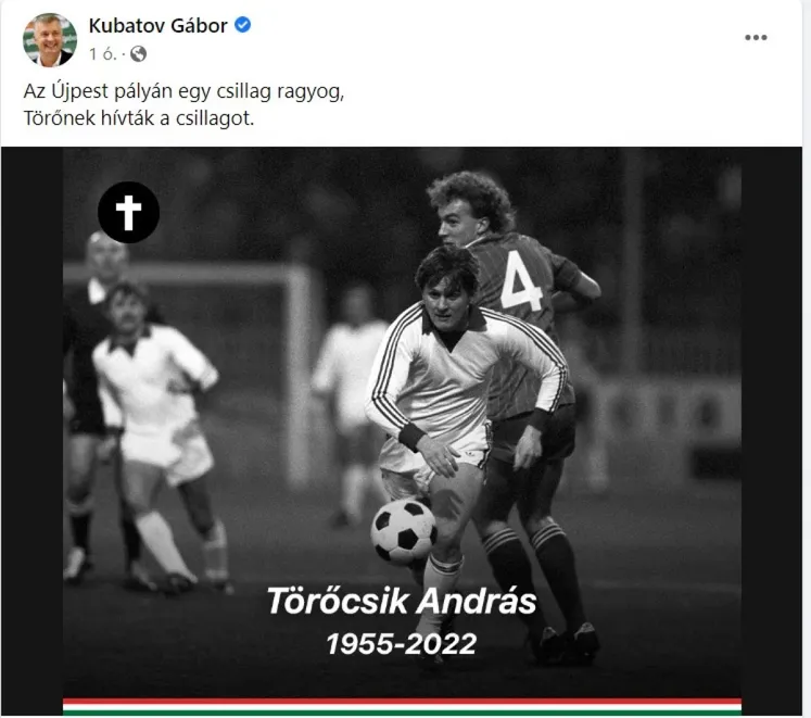 Kubatov Gábor, az FTC elnöke is bejegyzésben emlékezett meg Törőcsikről: