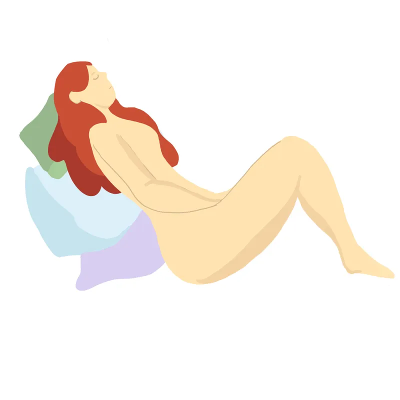Érdemes kialakítani kényelmes kuckót az egyszemélyes szexhez is, legjobb puha párnákkal megtámasztani a hátat.
