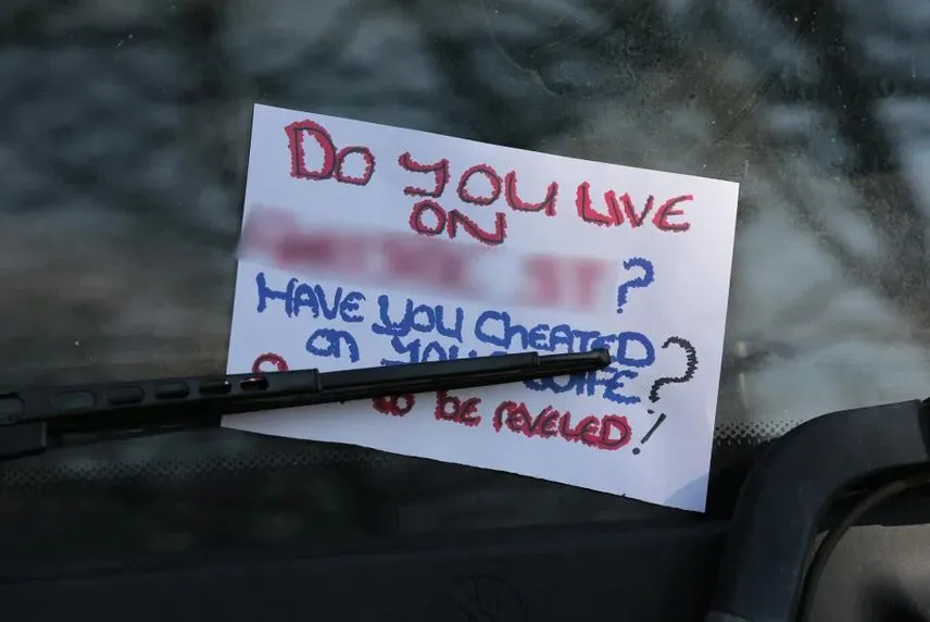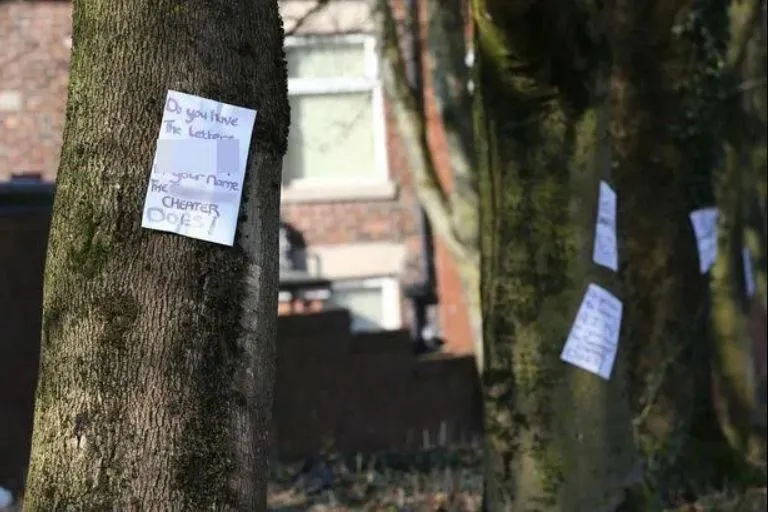 Minden hűtlen férj a szívéhez kapott Manchesterben szombat reggel: ugyanis a város északnyugati részében minden egyes fán, szemeteskukán, autószélvédőn kézzel írt üzenetek fogadták őket. Méghozzá arról, hogy hamarosan nyilvánosságra kerül, hogy melyik az a bizonyos hűtlen férj, aki eszméletlen pofátlanul csalja a feleségét