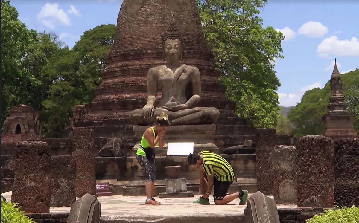 Meggyes Dávid fél évvel az ázsiai kaland előtt már eltervezte, hogy megkéri szerelme, Horváth Gréta kezét. Így éppen kapóra jött a különleges utazás, elrejtette hát a gyűrűt és heteken át várta az alkalmas pillanatot, ami végül Thaiföldön, Sukhothai ősi királyságának falai közt érkezett el.
