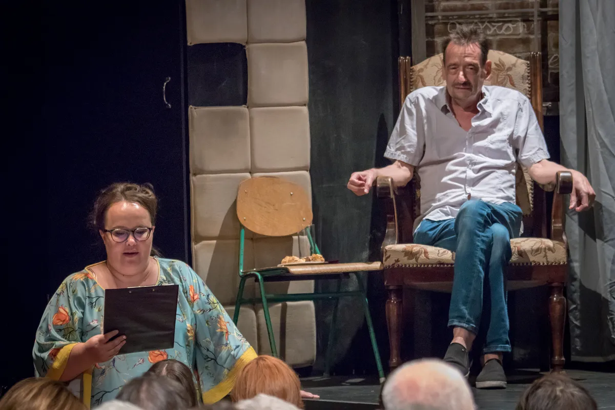 „Marci annyit tudott, hogy este jelenése van, mert a Margerida asszony című előadást megvásárolta egy cég és neki beszédet kell mondania a nézők előtt. Amikor beért a színházba, Böhm Gyuri, a rendező félrehívta, hogy közölje vele, én valamiért hisztis hangulatban vagyok és be kellene jönnie hozzám az öltözőbe. Én addigra már félig fel is öltöztem a jelmezembe, hogy teljesen hiteles legyen a dolog és rosszkedvet szimuláltam”