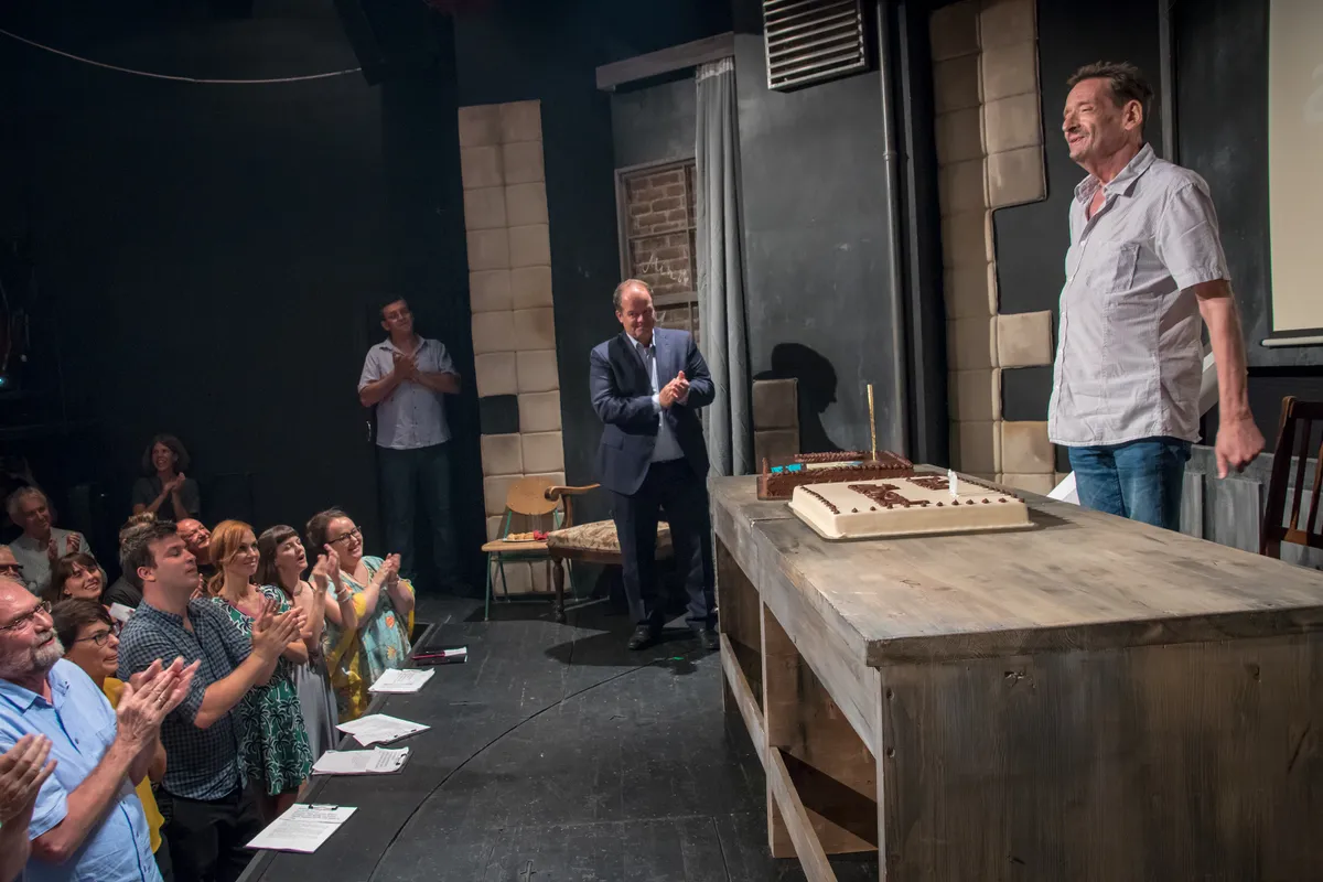 Karinthy Márton, a Karinthy Színház alapító igazgatója semmit sem sejtett, amikor szombat este megérkezett a teátrumba, ahol tudomása szerint egy bérelt előadáson kellett beszédet mondania a közönségnek. Kollégái, barátai és tisztelői addigra már elfoglalták helyüket a nézőtéren, hiszen valójában egy hatalmas meglepetésbulival készültek a hetvenéves direktornak. A főkolompos Balázs Andrea volt, aki még a jelmezét is magára öltötte, hogy még hitelesebb legyen az „átverés”.