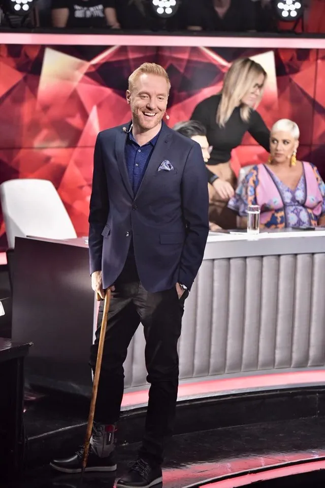 A mester bottal és bokamerevítőben bicegett be a TV2 stúdiójába.