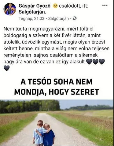 Győzike aggasztó bejegyzést tett közzé a testvéri szeretetről a Facebook-oldalán, majd el is tüntette a posztot... Mi áll a háttérben?