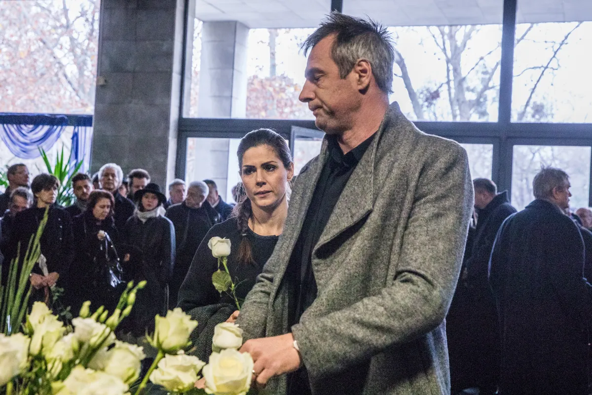 Karinthy Márton író-rendező kedd délelőtti temetésén gyakorlatilag megtelt a Fiumei úti sírkert ravatalozója, ahol rengeteg tisztelője, barátja és kollégája búcsúztatta.