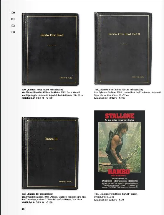 Az árverésnek három fő eleme volt, mégsem ezeknél alakult ki igazi licitháború. Olyannyira nem, hogy a három Rambo-kés végül nem is talált gazdára, mert csupán egyetlen online licit érkezett a 20 milliós kikiáltási árra, de azt még az aukció közben visszavonta az ajánlattevő.