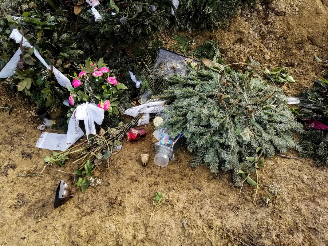 Éppen három héttel a temetése után ugyanis a virágok, a koszorúk és a mécsesek szétdobálva, összetaposva hevertek a földhalom körül.