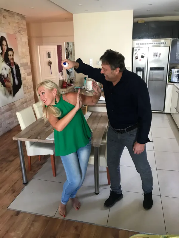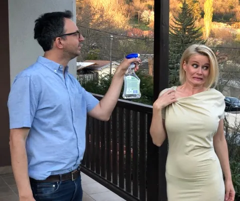 Völgyesi Gabi láthatóan meglepődött az Ádám által választott különleges „kölnin”, de végül ő is megszerezte a fertőtlenítős flakont és meglocsolta a férjét…