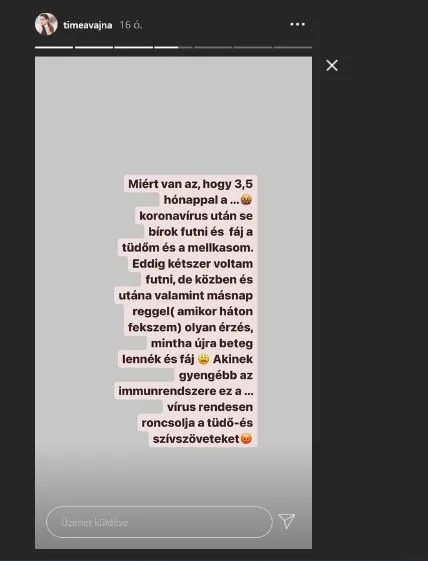 Timi az Insta-sztorijában írt az észlelt maradványtünetekről.