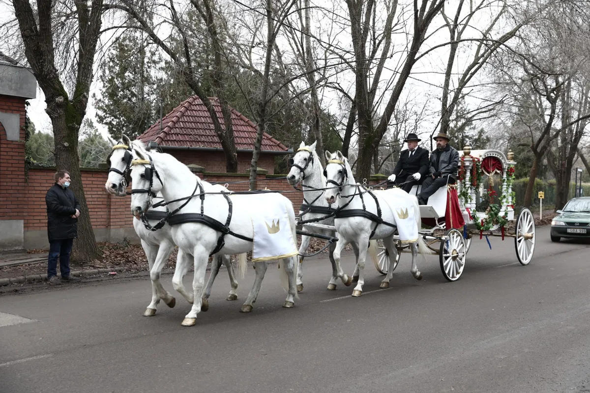 Grófo négylovas hintóban lévő koporsóját cigányzeneszóval kísérték utolsó útjára.