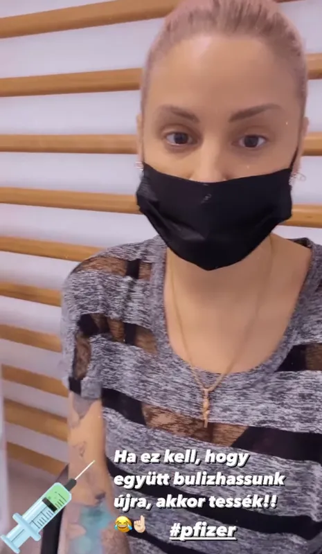 „Ha ez kell, hogy együtt bulizhassunk újra, akkor tessék” – írta a fotóhoz Viki, amit az oltóponton készített.