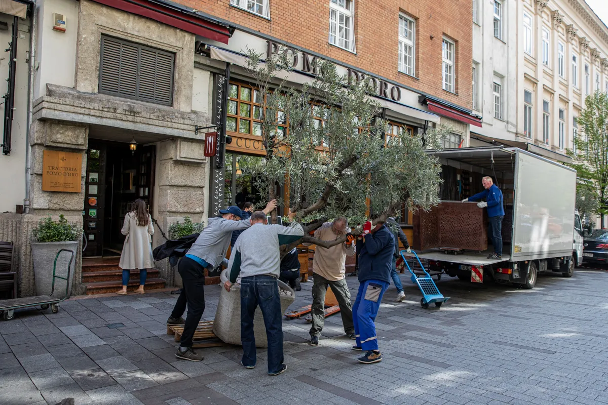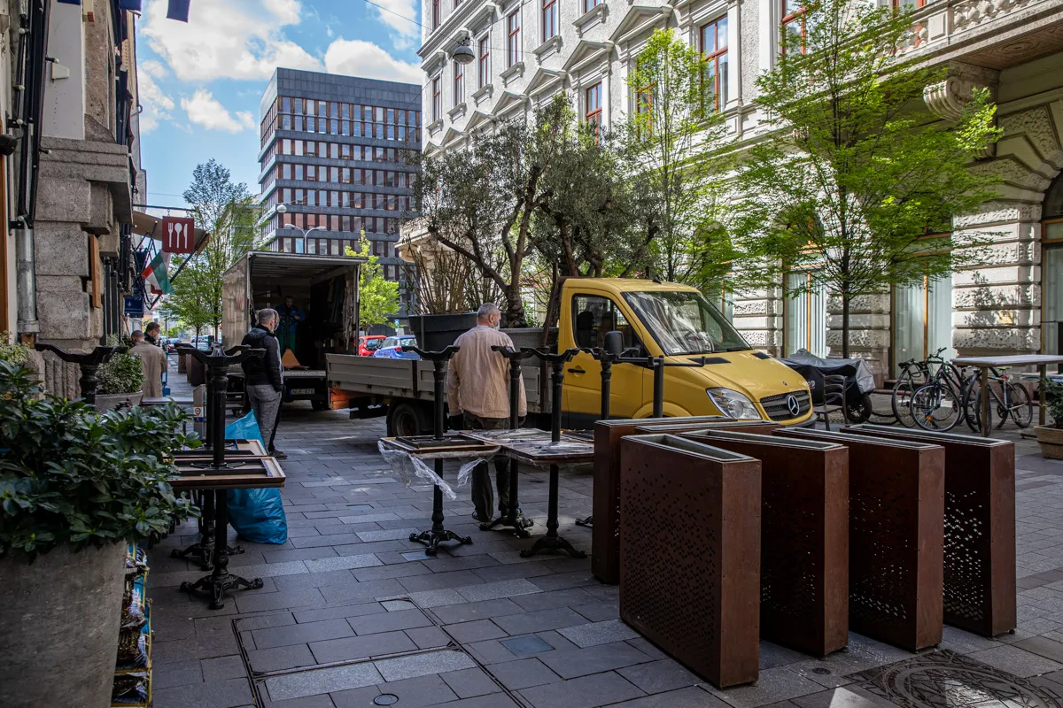 Hatalmas volt a nyüzsgés péntek kora délután Gianni Annoni budapesti éttermében. Aki csak élt és mozgott, azon dolgozott, hogy szombat reggel, amikor is kinyithatnak végre a teraszok, minden a helyén legyen. Sorra érkeztek a teherautók, melyek platóiról hol díszfák, hol pedig asztalok és székek bukkantak elő.