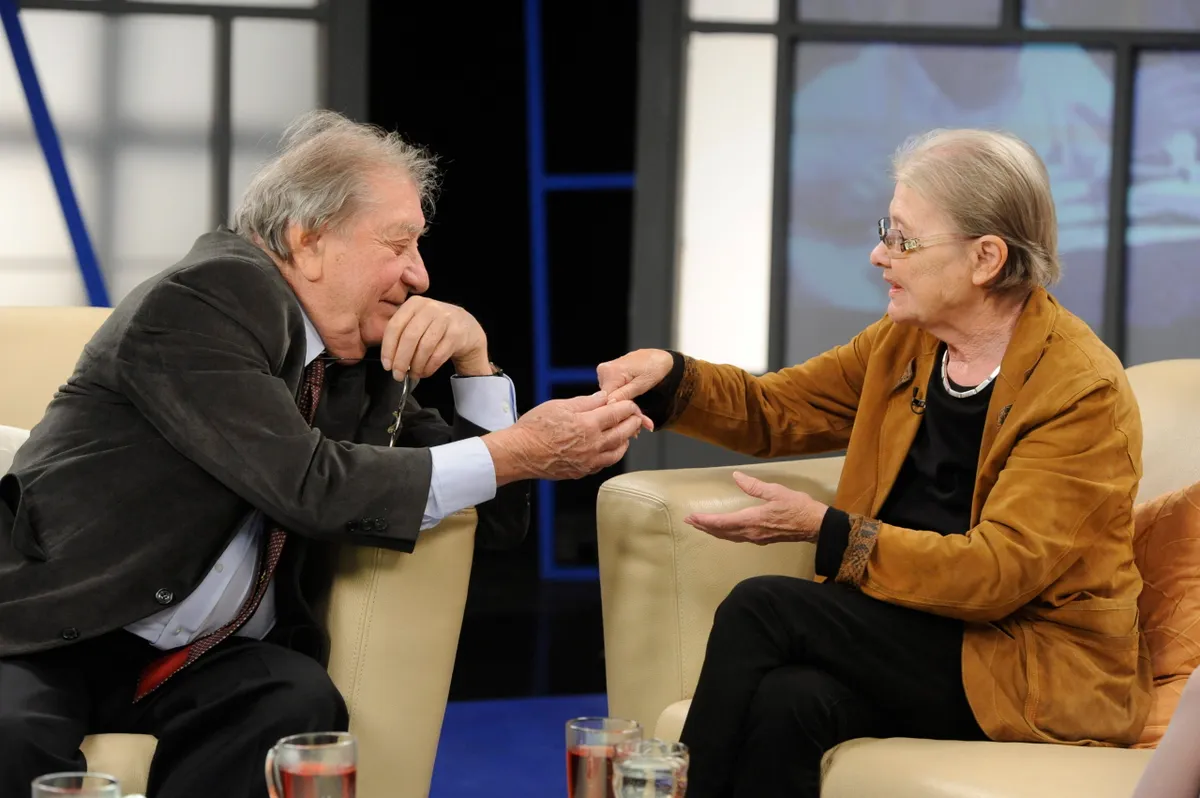 A 87-ik születésnapját ünneplõ Makk Károly filmrendezõ és Törõcsik Mari színésznõ a Hogy volt!? címû tv-mûsor felvételén, az MTVA 1-es stúdiójában.