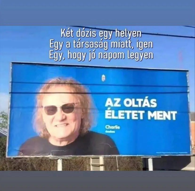 A legendás előadó részt vesz a kormány oltási kampányában, vagyis óriásplakátokon buzdít mindenkit arra, hogy mielőbb regisztráljunk és vegyük fel valamelyik koronavírus elleni vakcinát. Ebben a plakátban látták meg a potenciált a humorra nyitott honi mémgyárosok és máris megszületett a napnál is világosabb utalás.