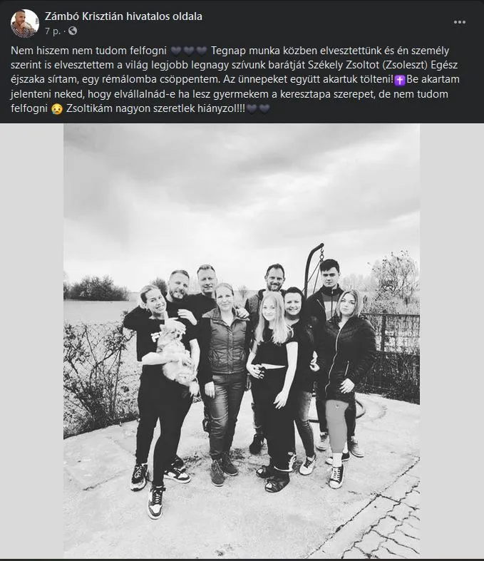 Zámbó Krisztián a közösségi oldalon osztotta meg fájdalmát. Elvesztette legjobb barátját, akit éppen egy fontos feladatra szeretett volna felkérni.