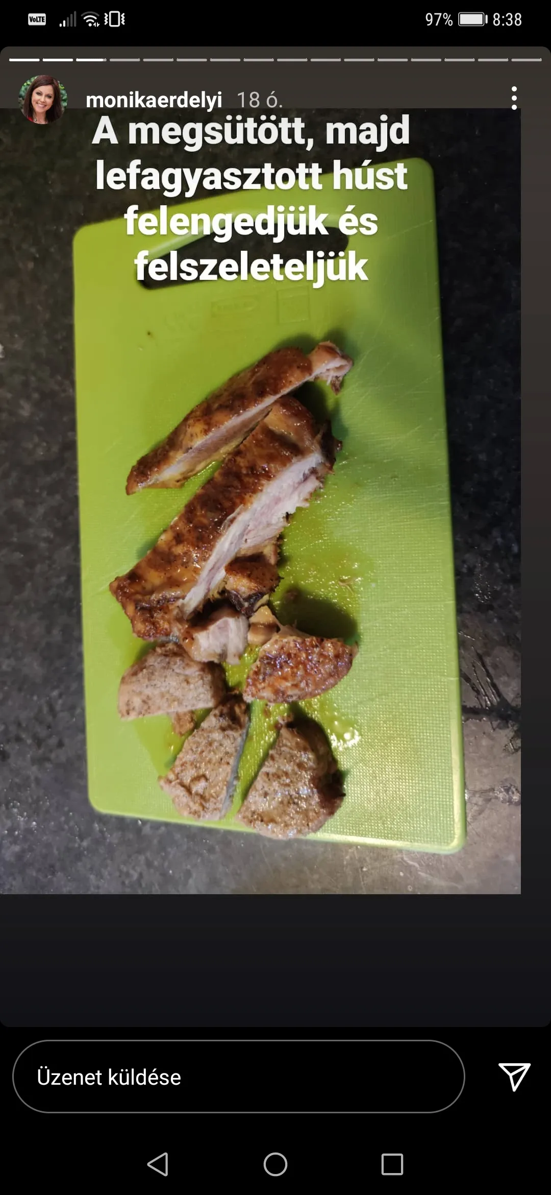 Mónika szerint nincs abban semmi rossz, ha valaki a megmaradt sült húst lefagyasztja és egyszer, ha épp úgy tartja kedve és megéhezik, csak felengedi azt, egy kis olajon átpirítja és máris kész a maradékból készült főfogás. Ahogy az egykori tévés mondta Insta-sztorijában, még fűszer se kell rá, hiszen egyszer már ez is megtörtént. Milyen praktikus ...