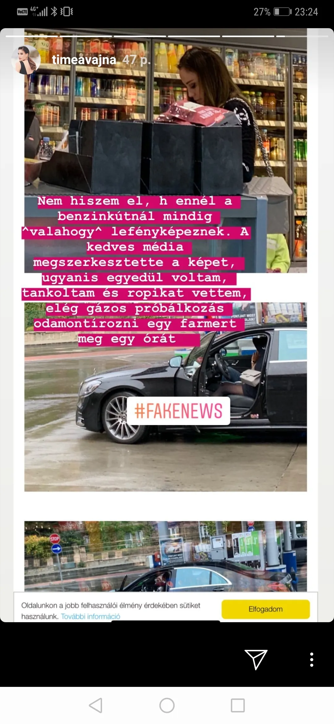„A kedves média megszerkesztette a képet, ugyanis egyedül voltam, tankoltam és ropit vettem. Elég gázos próbálkozás odamontírozni egy farmert meg egy órát. Megszokhattam volna az évek alatt, hogy mindig beszédtéma vagyok, de a szándékos rosszindulat és a rengeteg hazugság nagyon felbosszant” – mondta Andy Vajna özvegye, aki talán azért is szúrhatja mások szemét, mert kiderült, ő az egyedüli örökös megboldogult férje után.