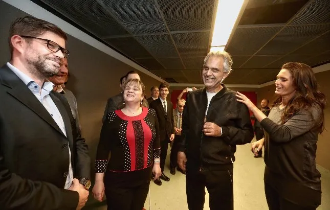Az olasz operaénekes vasárnap délután hatvan szerencsés vak és gyengénlátóval találkozott az Aréna-koncertje előtt.