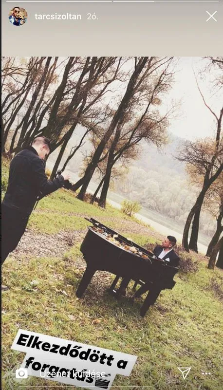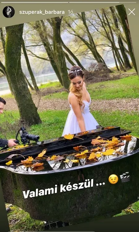A mulatós sztár kedvesét egy gyönyörű menyasszonyi ruhában fotózták le egy erdőben, amint egy zongora előtt áll.