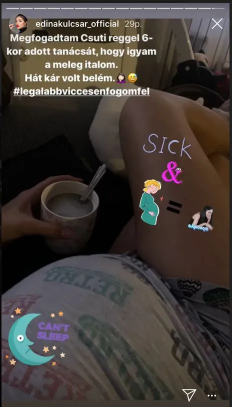 A műsorvezető nincs könnyű helyzetben, hiszen várandóssága miatt gyógyszert sem szedhet. Így meleg teával, és pihenéssel próbálja átvészelni ezt az időszakot.
