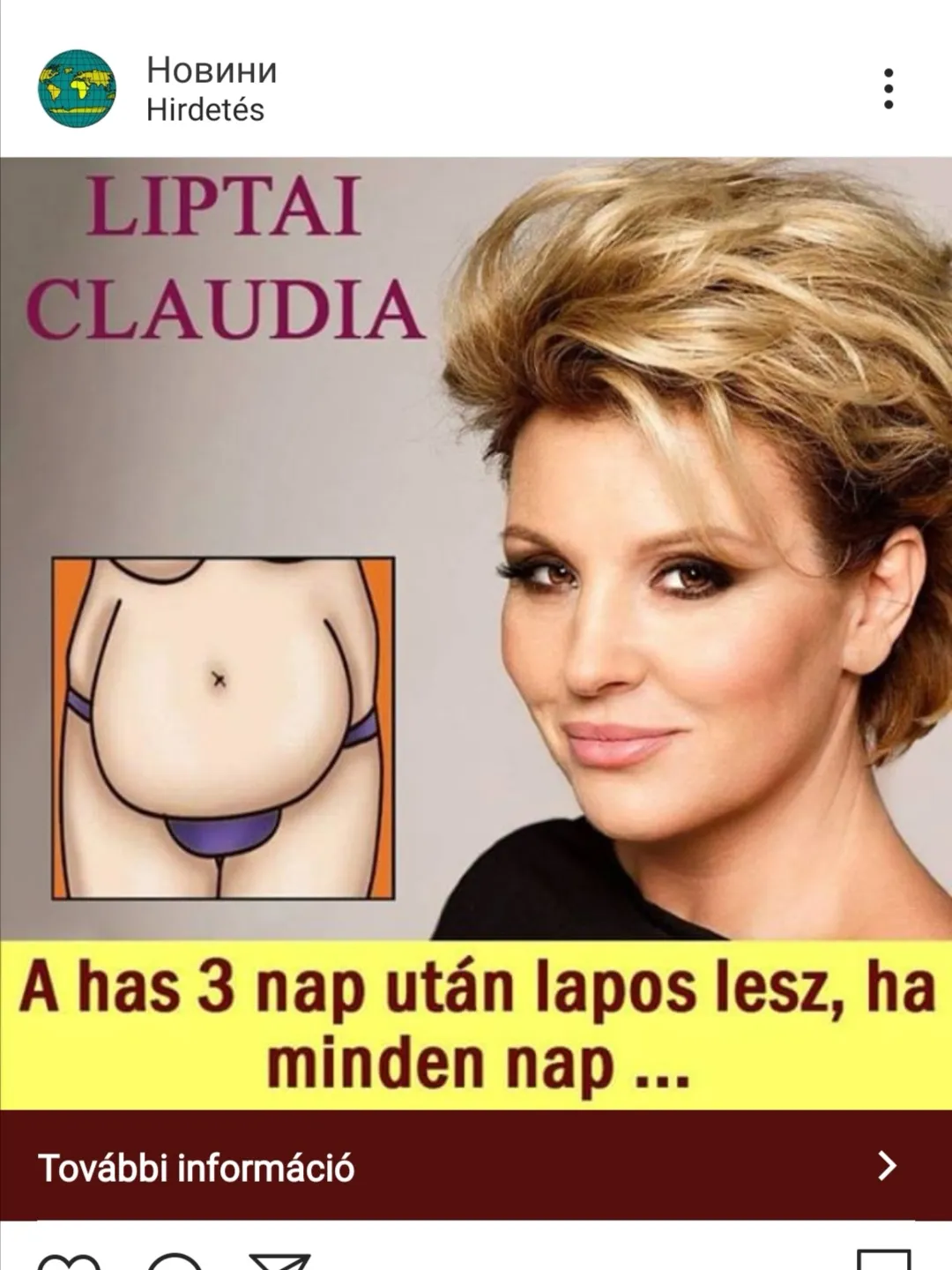 Sorozatosan élnek vissza a hírességek arcával és nevével. Korábban is volt már példa arra, hogy kamu fogyókúrás reklámokhoz használtak fel hírességeket, de hogy egy lógó has mellé tegyék Liptai Claudia arcát, az mégis csak több a soknál.