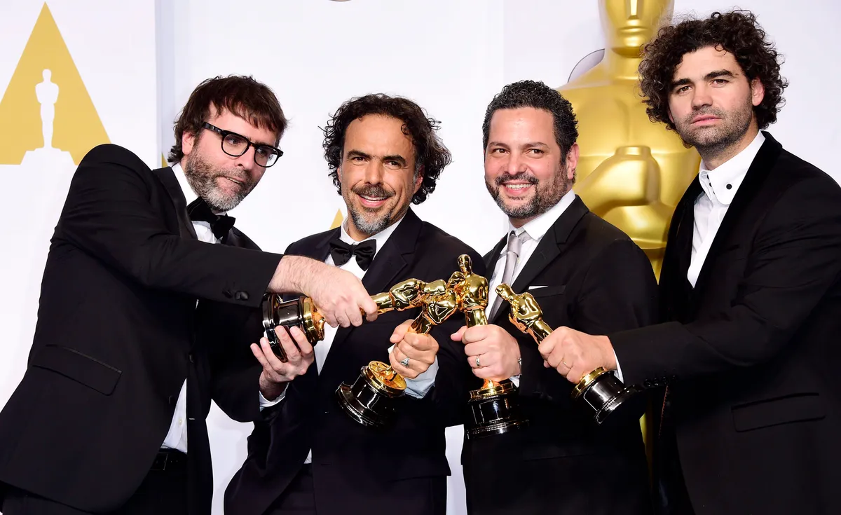 Nicolas Giacobone író, társproducer, Alejandro González Inárritu mexikói rendezõ, író, producer, Alexander Dinelaris író, társproducer és Armando Bo író, társproducer (b-j) a sajtószobában tartott fotózáson, miután a Birdman avagy (A mellõzés meglepõ ereje) címû filmért átvette a legjobb forgatókönyv kategóriában odaítélt kitüntetést az Oscar-díjak átadási ünnepségén a Los Angeles-i Dolby Színházban 2015. február 22-én. (MTI/EPA/Paul Buck)